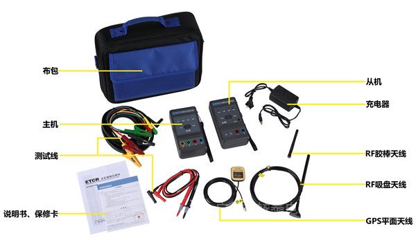 絕緣強度 AC 3700V/rms(電路板與外殼之間) 隨機附件 主機:1臺;從機:1臺;吸盤天線:1個;平面天線:1個;膠棒天線:1個;主機測試線:1組(大鱷魚夾+彈棒插),從機測試線:2條(表筆+彈棒插);充電器:1個;儀表包:1個。  -