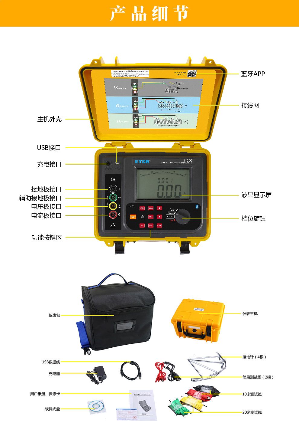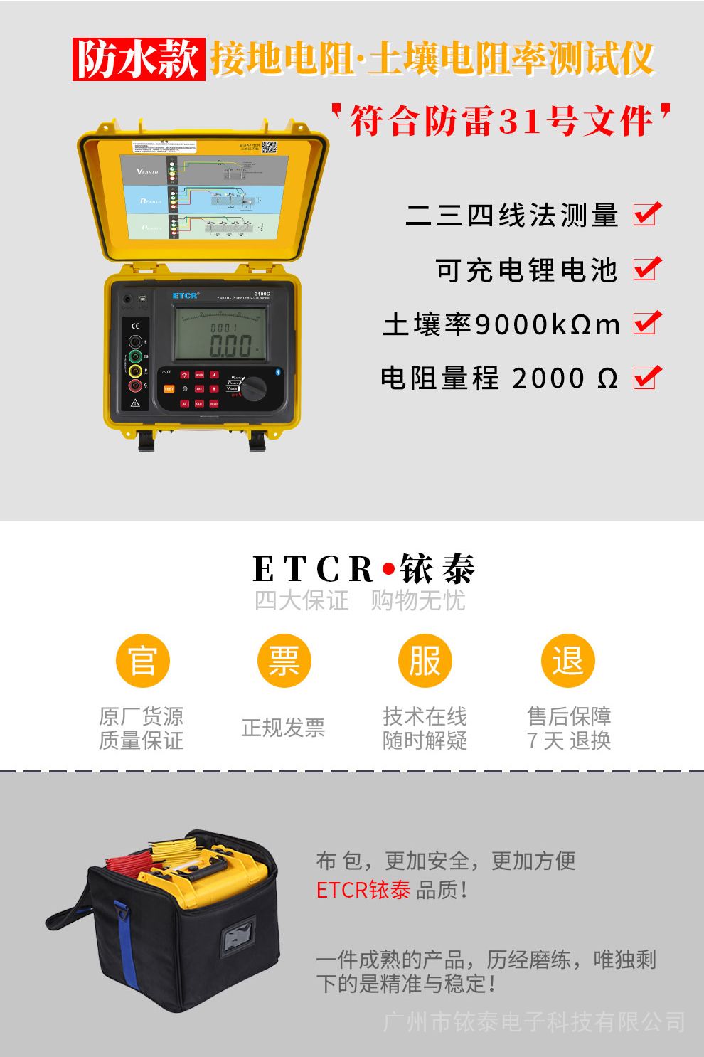 ETCR3100C土壤電阻率測試儀數字式接地電阻表鋰電高精度防雷ETCR