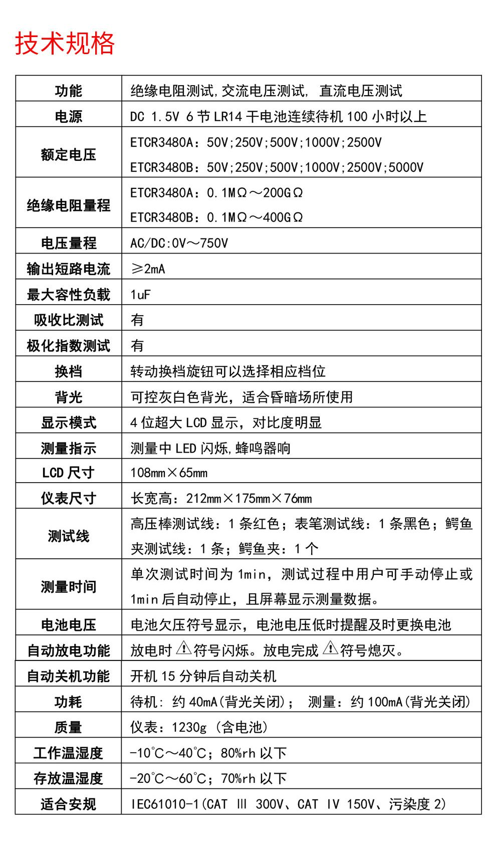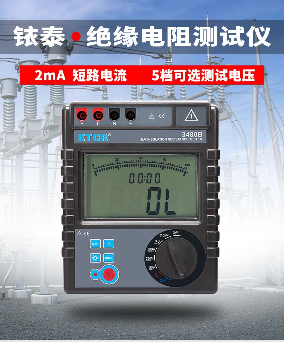 -     當(dāng)前位置:廣東銥電測控技術(shù)有限公司 > 產(chǎn)品中心 > 接地電阻測試儀 > ETCR3480A/3480B絕緣電阻測試儀5000V兆歐表數(shù)字式高精度帶極化指數(shù)ETCR