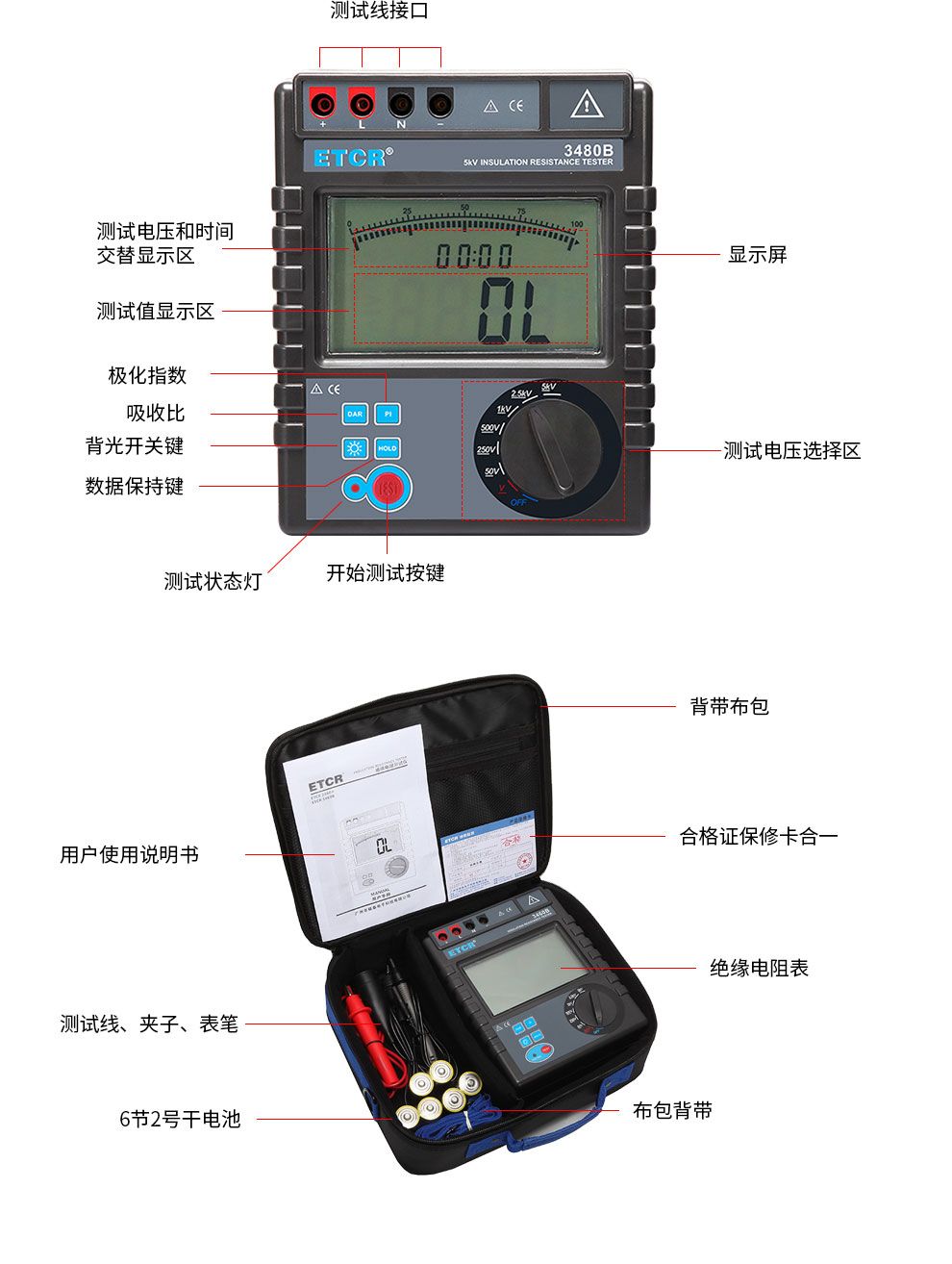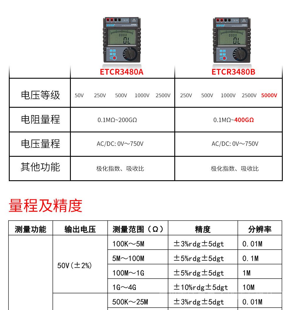 ETCR3480A/3480B絕緣電阻測試儀5000V兆歐表數(shù)字式高精度帶極化指數(shù)ETCR