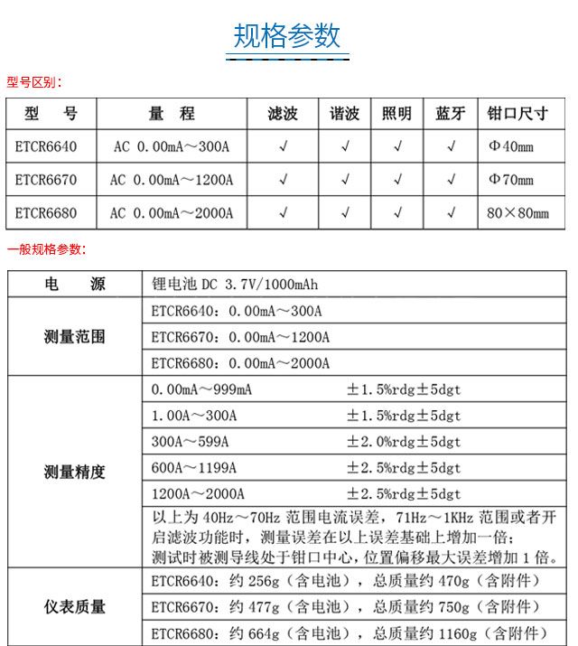 銥泰ETCR6640大口徑鉗形漏電流表交流高精度泄漏電流表